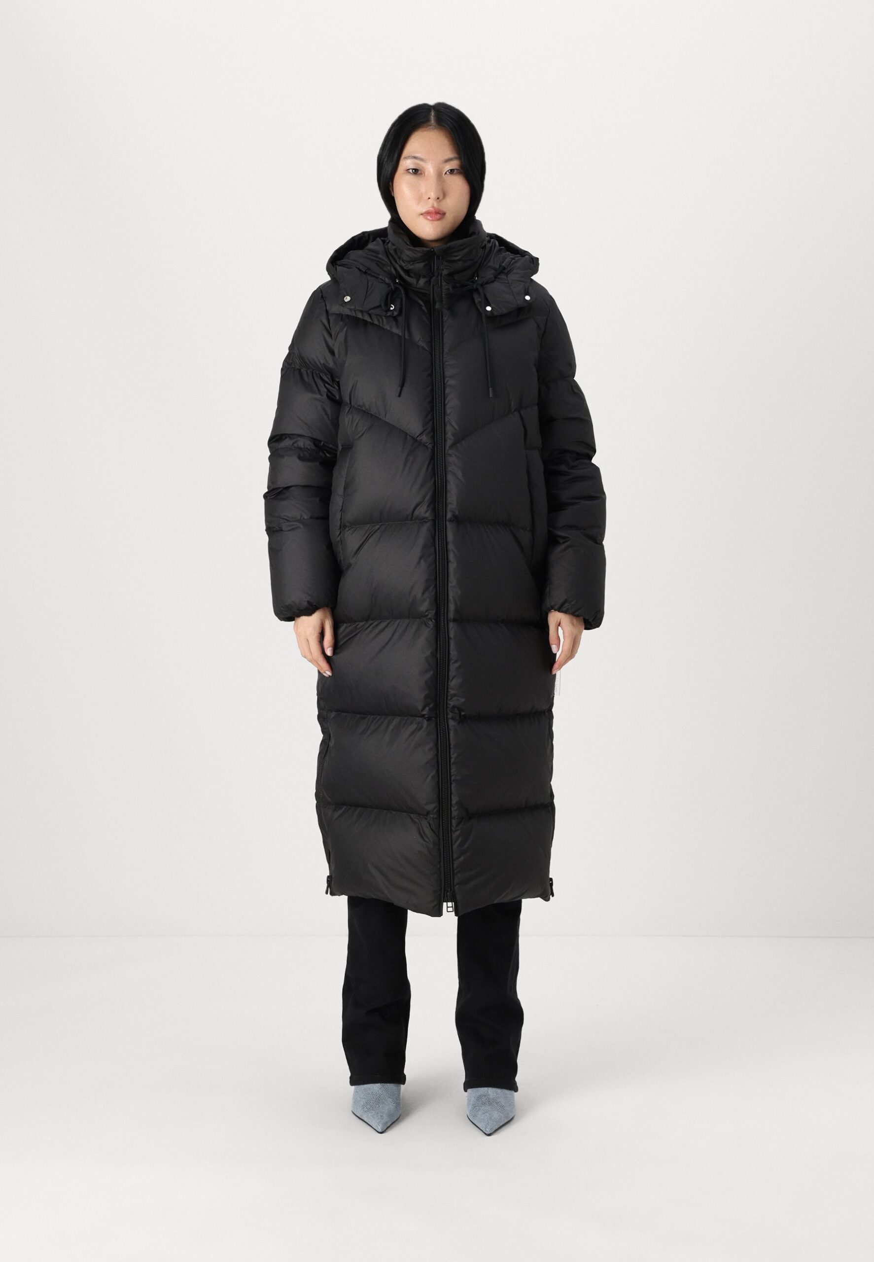 schwarzer daunenmantel